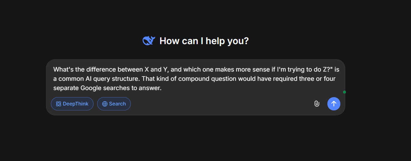 AI queries break that habit entirely. Users ask in full sentences or even paragraphs.