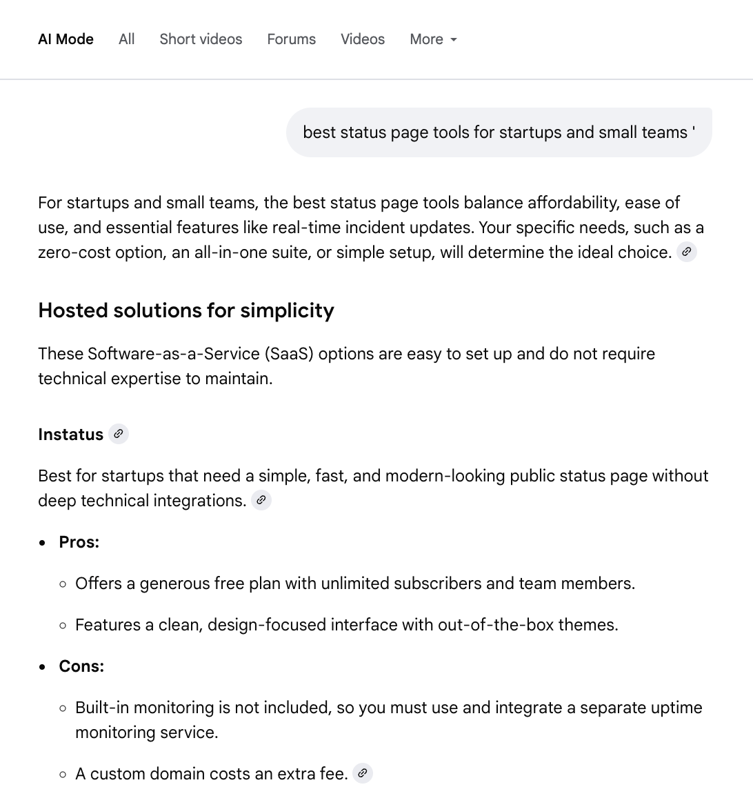 Even when users don't click, AI Mode citations build awareness and credibility. When they finally search your brand directly, you've already established trust through repeated AI recommendations.