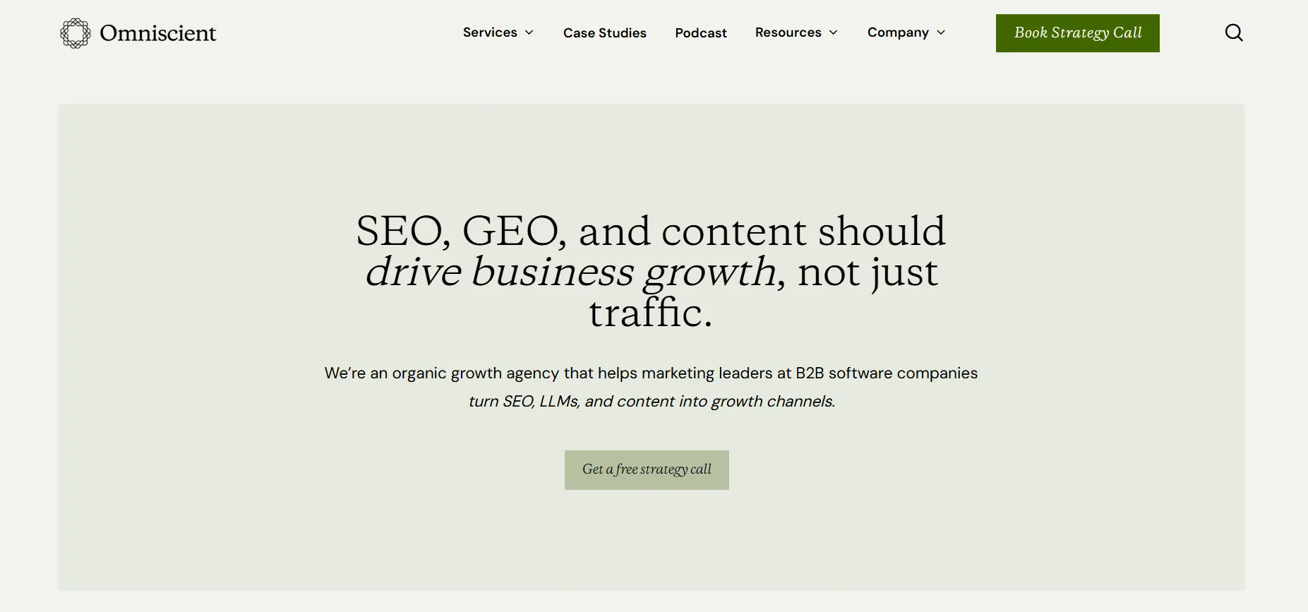 Omniscient Digital accelerates B2B SaaS growth by integrating GEO, content, and SEO directly into revenue-generating pipelines. While Animalz’s strength lies in thought leadership, Omniscient embeds with client teams to target qualified leads, optimize for conversions, and rapidly scale programmatic campaigns, ensuring content drives measurable business outcomes.