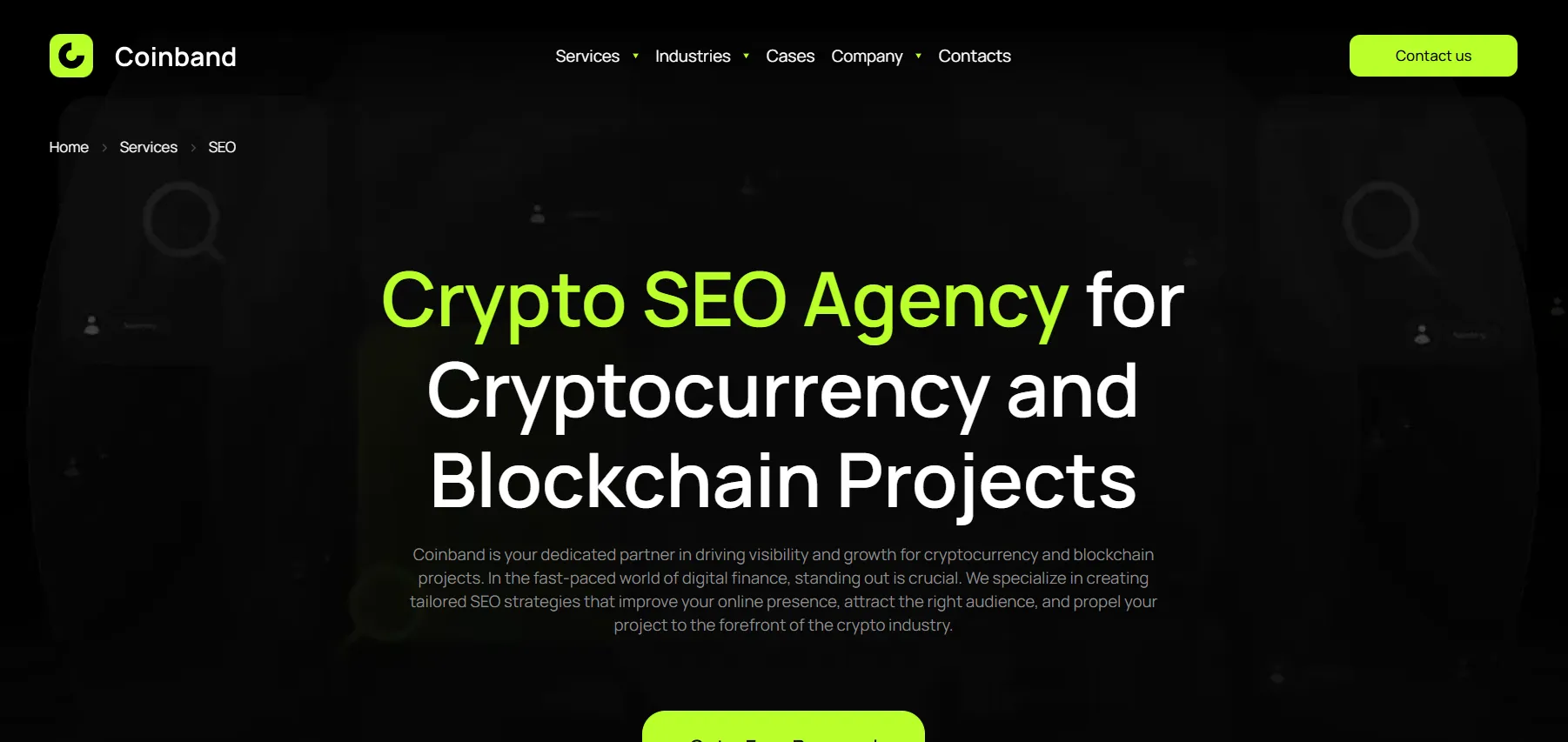 Coinband is a leading digital marketing agency for crypto and Web3 projects, with expertise spanning cryptocurrency, NFTs, blockchain, and Web 3.0. Their strength lies in crafting integrated marketing campaigns that blend strategy, creativity, and tech, making them a trusted partner for Web3 brands aiming to scale visibility and growth.