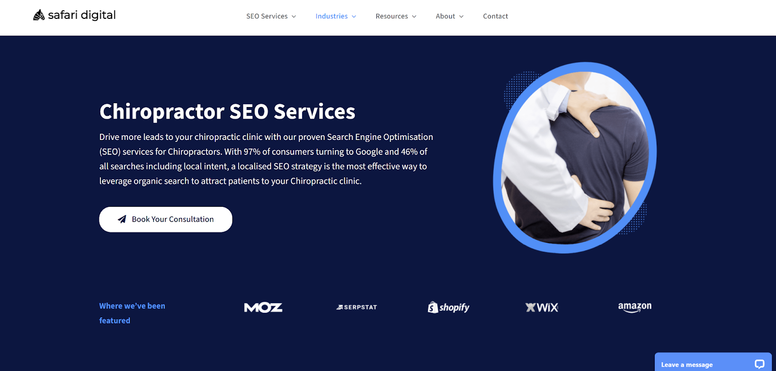 Safari Digital specializes in SEO for chiropractors, helping clinics improve online visibility, build trust, and drive bookings with tailored SEO strategies. They target both informational and transactional search queries, attracting patients at all stages of their search journey to the clinic’s website.