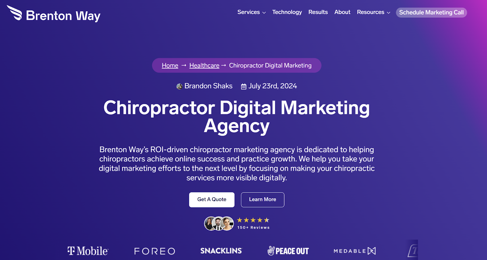 Brenton Way is a full-service digital marketing agency based in Woodland Hills, California, specializing in healthcare and wellness sectors. They offer a comprehensive suite of services specially designed for chiropractors, including SEO, paid media, social media management, content marketing, and brand strategy.