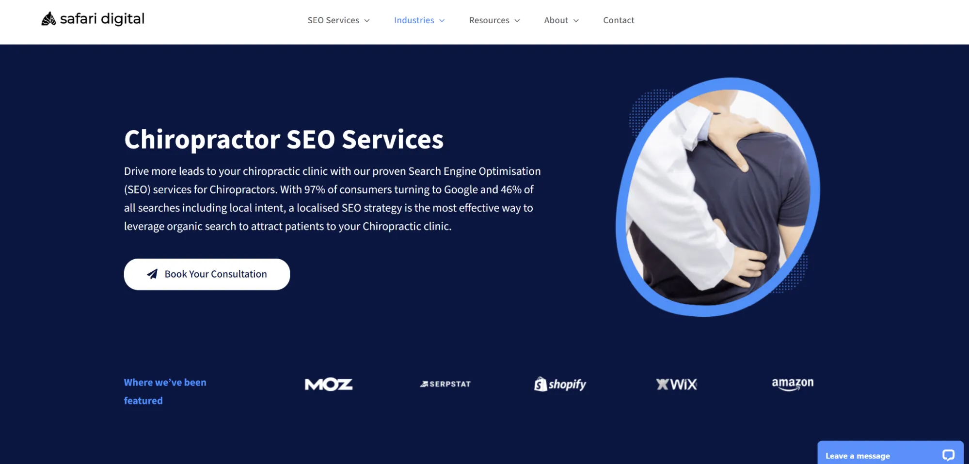 Safari Digital specializes in SEO for chiropractors, helping clinics improve online visibility, build trust, and drive bookings with tailored SEO strategies. Their holistic, long-term approach integrates technical SEO, on-page optimization, content creation, and local SEO, all designed to increase organic traffic and reduce dependence on paid marketing.