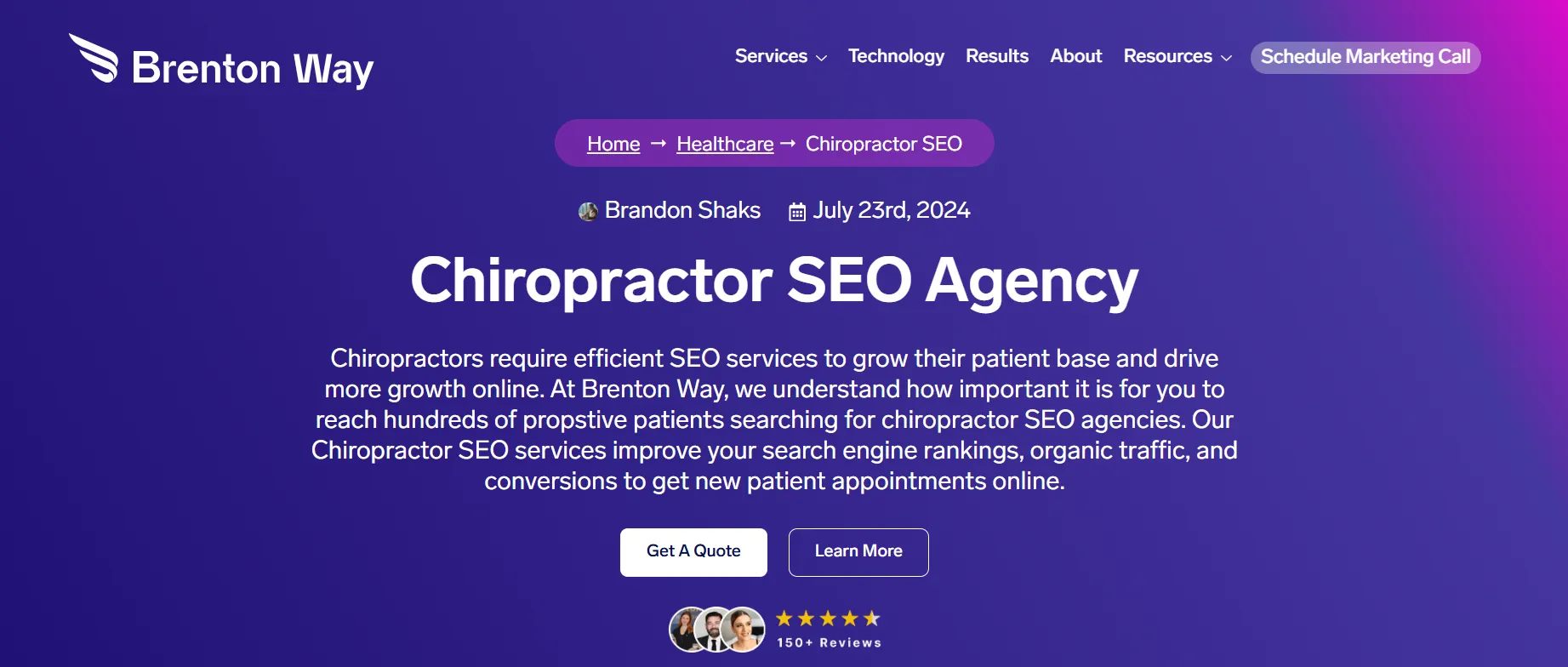 Brenton Way is a full-service digital marketing agency specializing in healthcare and wellness. For chiropractors, they deliver tailored SEO strategies that strengthen local visibility, attract new patients, and build lasting online authority. With a long-term, data-driven approach, Brenton Way helps chiropractic clinics grow sustainably while focusing on measurable results that drive real patient conversions.