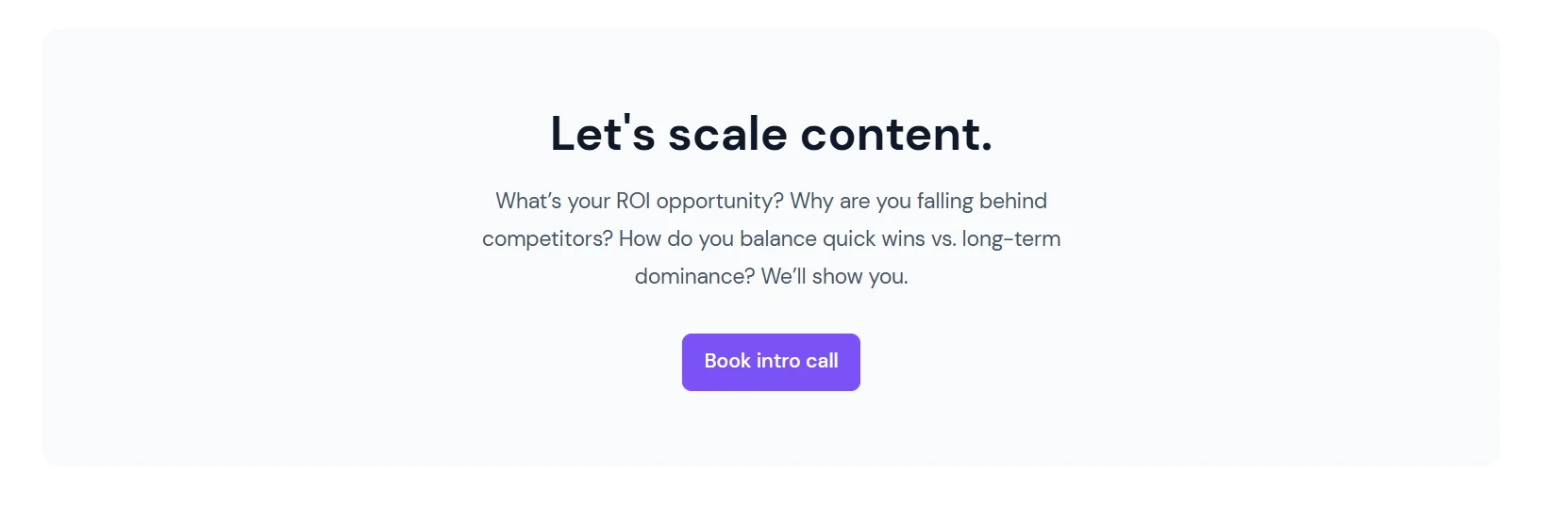 - Limited content types: Codeless’s model focuses on scalable blog output, which means they don’t fully support sales enablement content like case studies, ROI guides, product sheets, or multi-channel collateral. Companies seeking a complete content ecosystem may need additional vendors to fill these gaps.