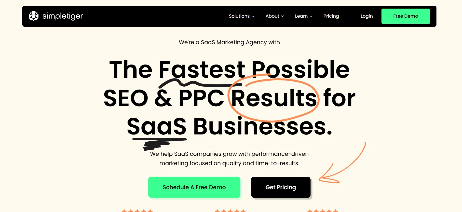 SimpleTiger is an SEO and PPC agency focused exclusively on SaaS brands. They drive fast, predictable growth using data-led strategy, proprietary AI tools, and agile execution. Their 80/20 approach prioritizes actions that deliver the biggest impact quickly. Compared to Codeless, SimpleTiger offers full-service SEO, including technical SEO and AI search optimization.