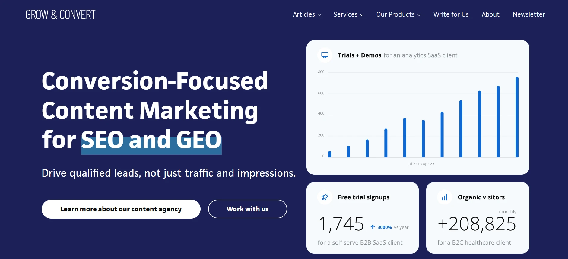 - Content optimized for conversions, pipelines, and measurable business outcomes