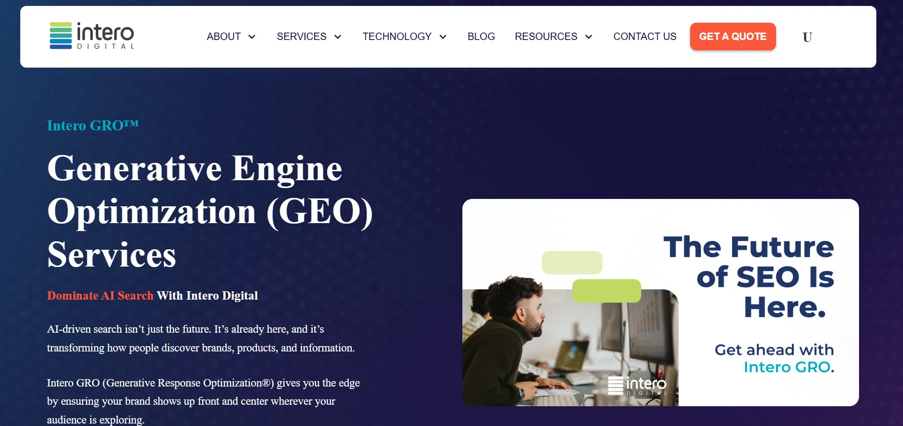 Intero Digital is a full-service digital marketing agency that pioneers Generative Response Optimization (GRO), its proprietary approach to Generative Engine Optimization (GEO). They leverage advanced tools like the InteroBOT® crawler to simulate how AI engines view content, ensuring technical excellence and strategic visibility across platforms like ChatGPT, Gemini, and Google AI Overviews