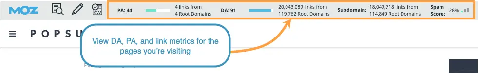 To assist you in identifying and evaluating the authority of websites, you can enhance your browsing experience by downloading the MozBar Chrome extension. With MozBar enabled, you gain access to valuable data on domain authority, allowing you to make informed decisions about the quality of links you encounter while browsing the web.