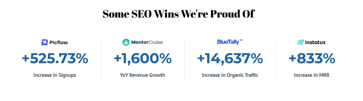 Trusted by Jasper, Loom, TikTok, and Hotjar, they specialize in long-term, compounding growth.