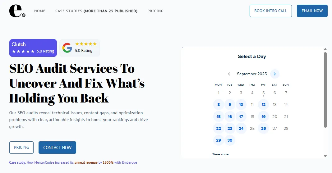 Topping our list, Embarque is a specialized SEO agency that helps businesses navigate complex website migrations without losing search visibility. We’ve handled projects ranging from technical crawlability fixes to full content restructures, ensuring smooth transitions across domains, platforms, and redesigns.