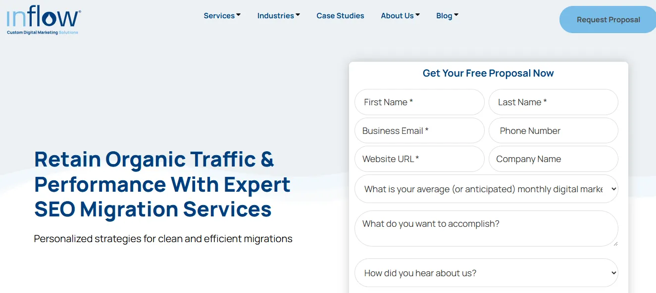 Inflow specializes in SEO website migration services, helping businesses retain organic traffic and performance when moving to new domains, platforms, or designs. Their expert team employs a detailed, three-phase process to minimize traffic loss, ensure proper indexing, and set the stage for long-term growth post-migration.