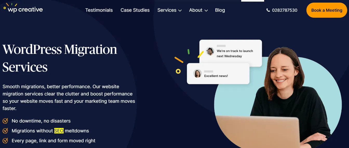 WP Creative offers secure, SEO-preserving website migrations, seamlessly transferring sites from platforms like Shopify, Squarespace, and Magento to WordPress or WooCommerce. Their "Marketechs" approach combines marketing vision with technical precision, ensuring zero downtime, maintained search rankings, and enhanced site performance and security for growth-focused businesses.