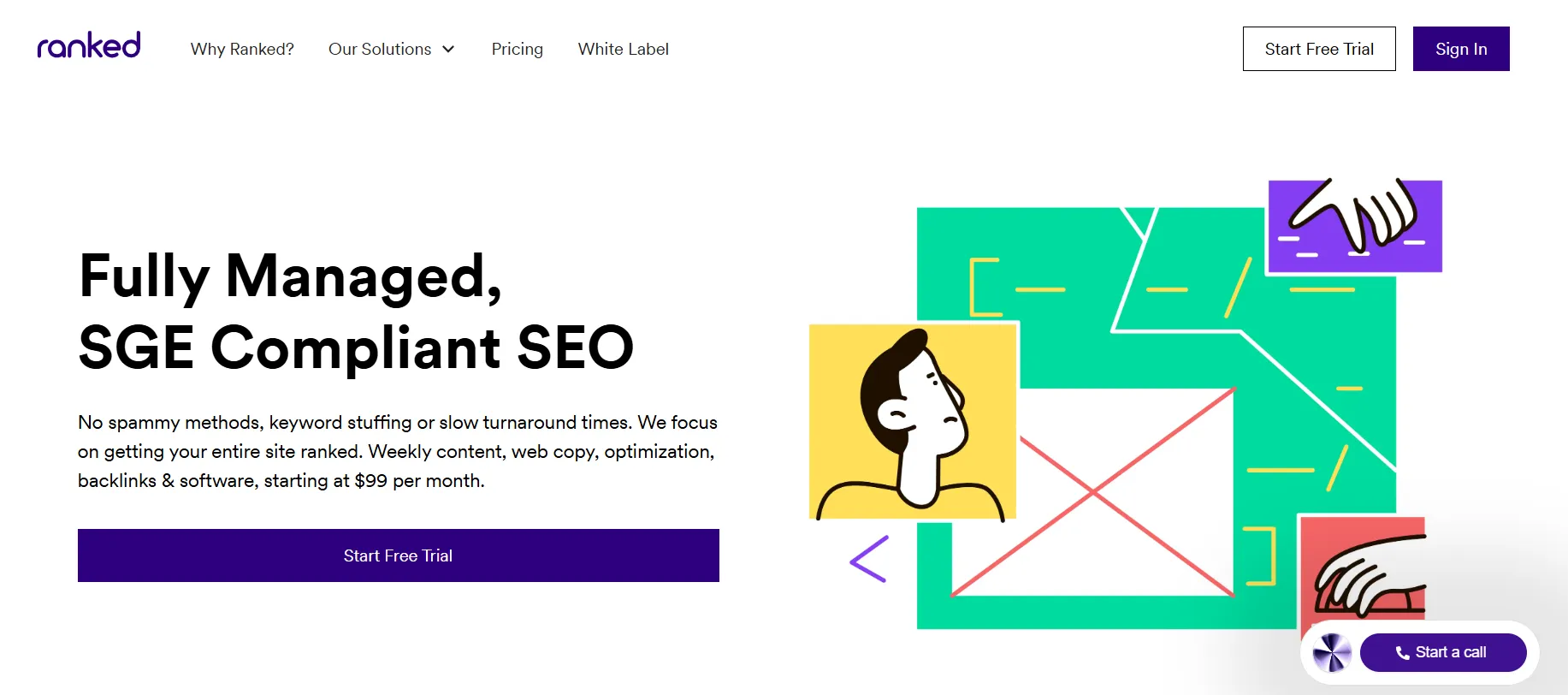 Ranked.ai is an SEO agency that offers fixed monthly subscription plans starting at $99 per month. They provide fully managed, "white hat" SEO services focused on compliance with modern search engines like Google AI Overviews. Their service includes weekly content creation, on-page and technical optimization, and backlink acquisition, supported by leading SEO software and a 24/5 accounts team.